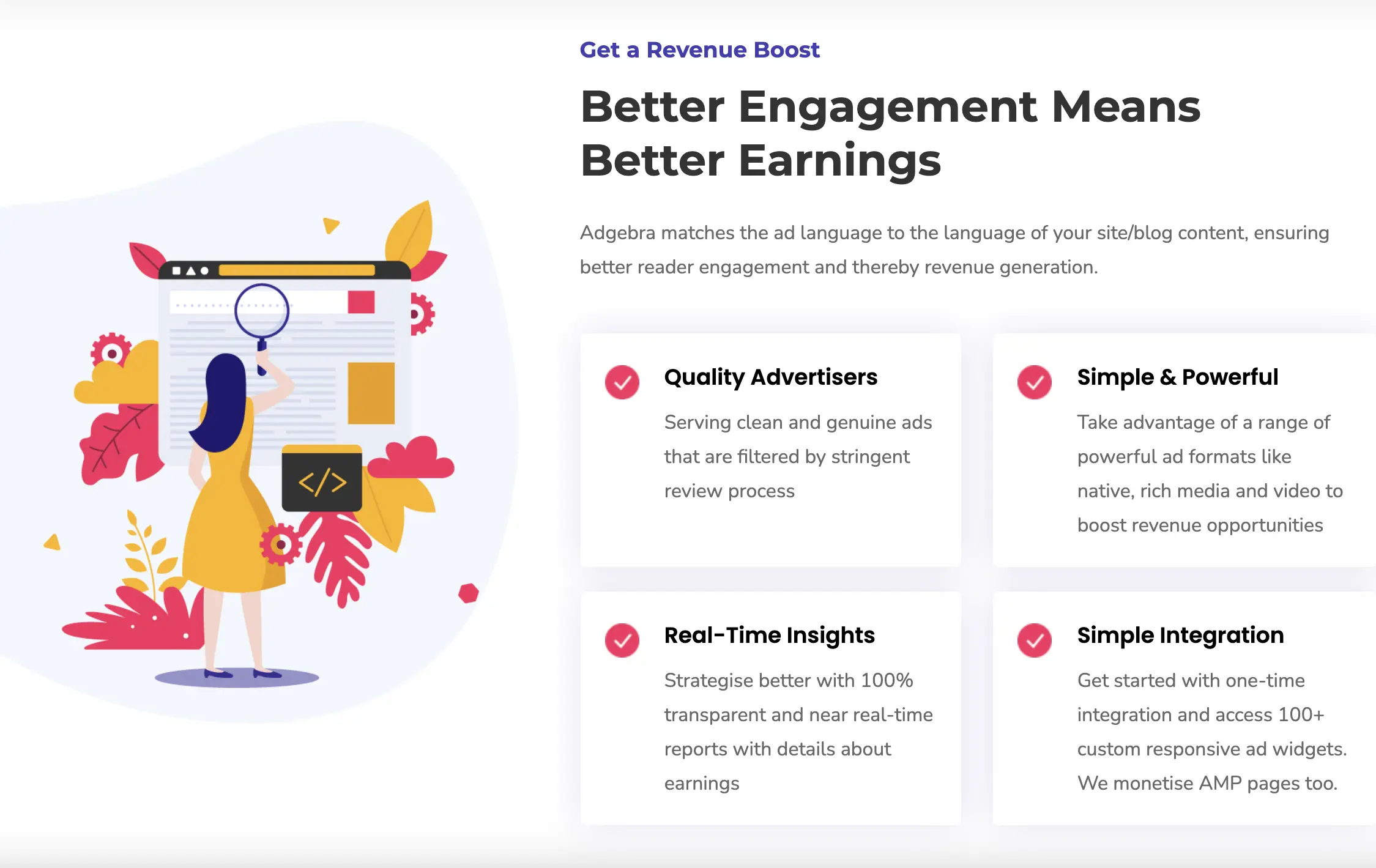 - Real-time Analytics: Adgebra provides real-time insights and 100% transparent reports on crucial details on earnings.