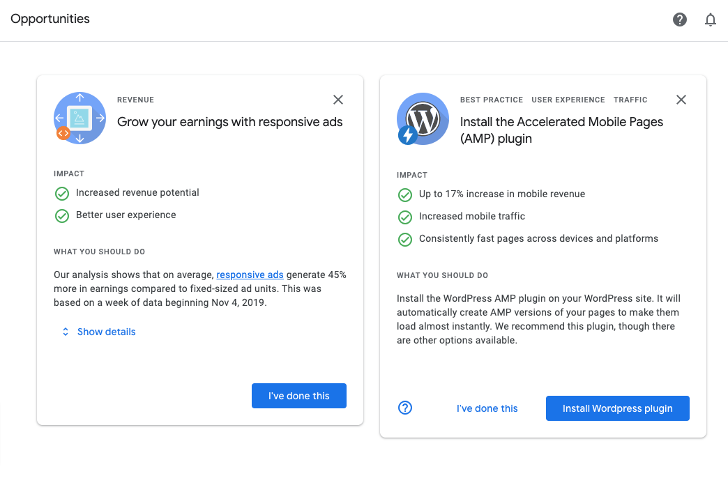 - They optimize the size of your ad units to fit desktops or mobiles, making them more visible. You can do so by just adding a piece of code to help show ads tailored to your site's layout.