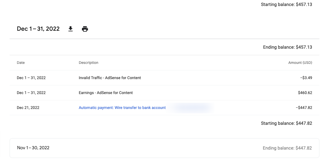 Google AdSense Payment Info