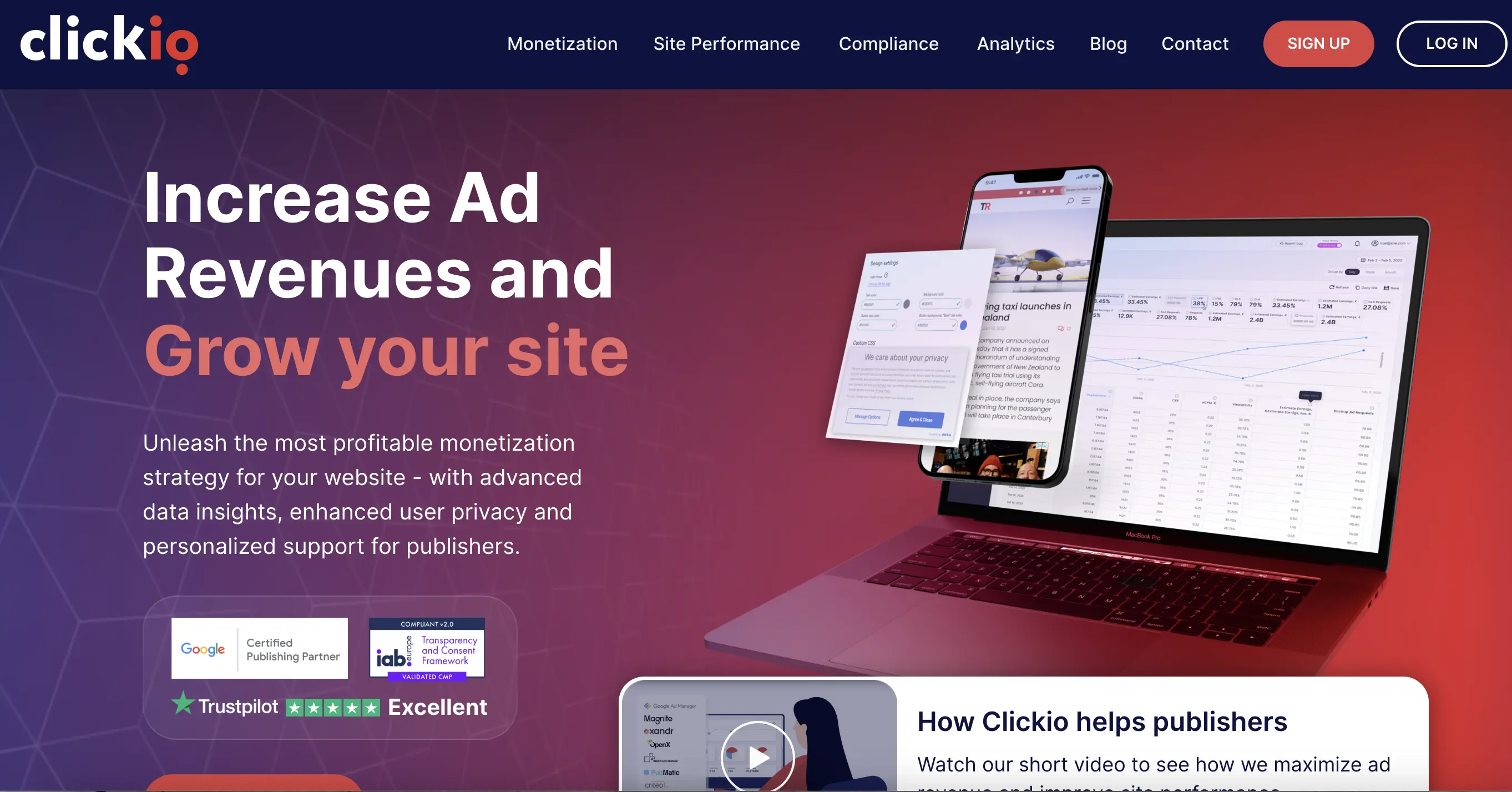 Clickio monetizes content-driven sites such as news outlets, lifestyle blogs, and video platforms.