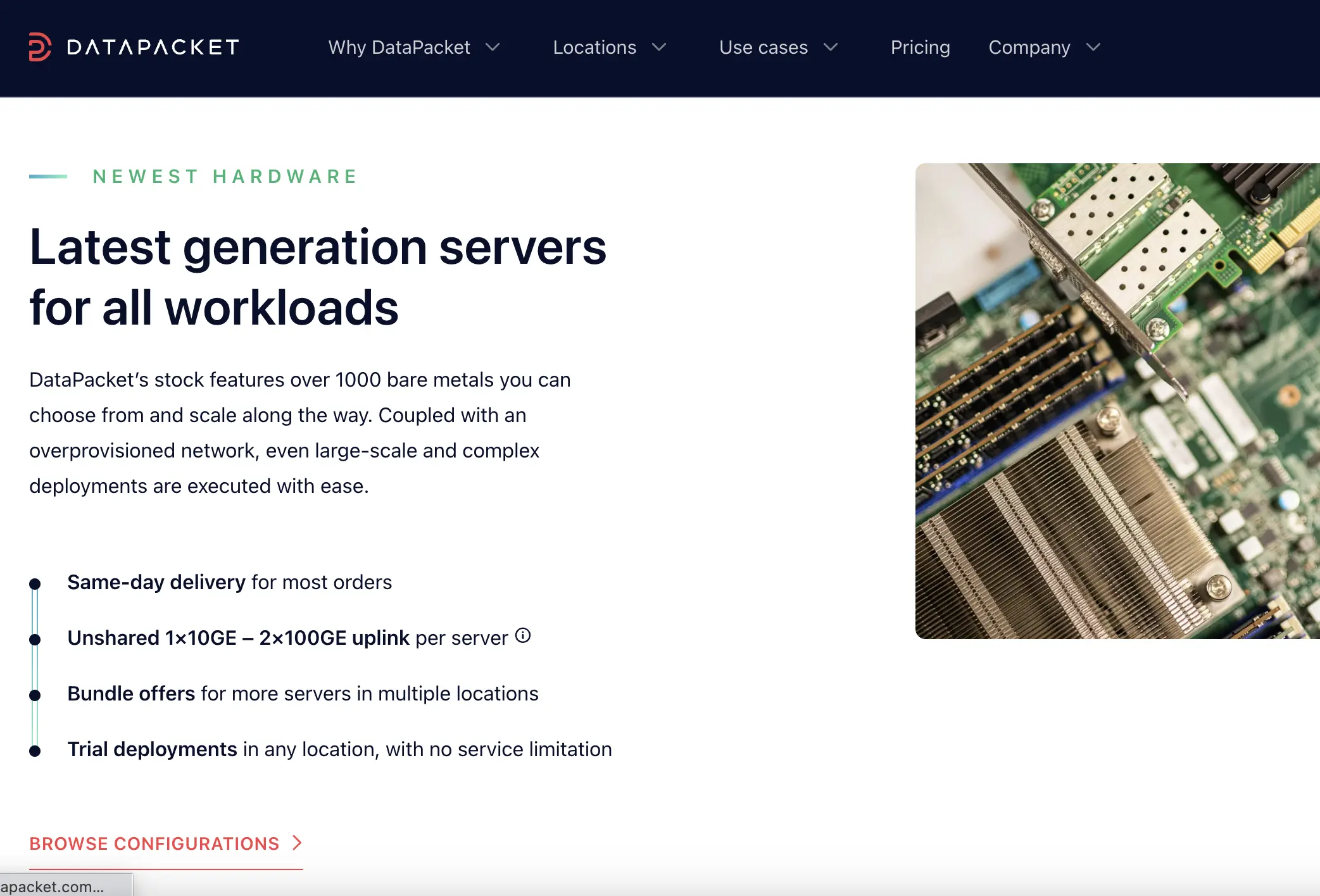- DataPacket features an inventory of more than 1000 bare metal servers, providing a wide selection for users to scale as per requirement.