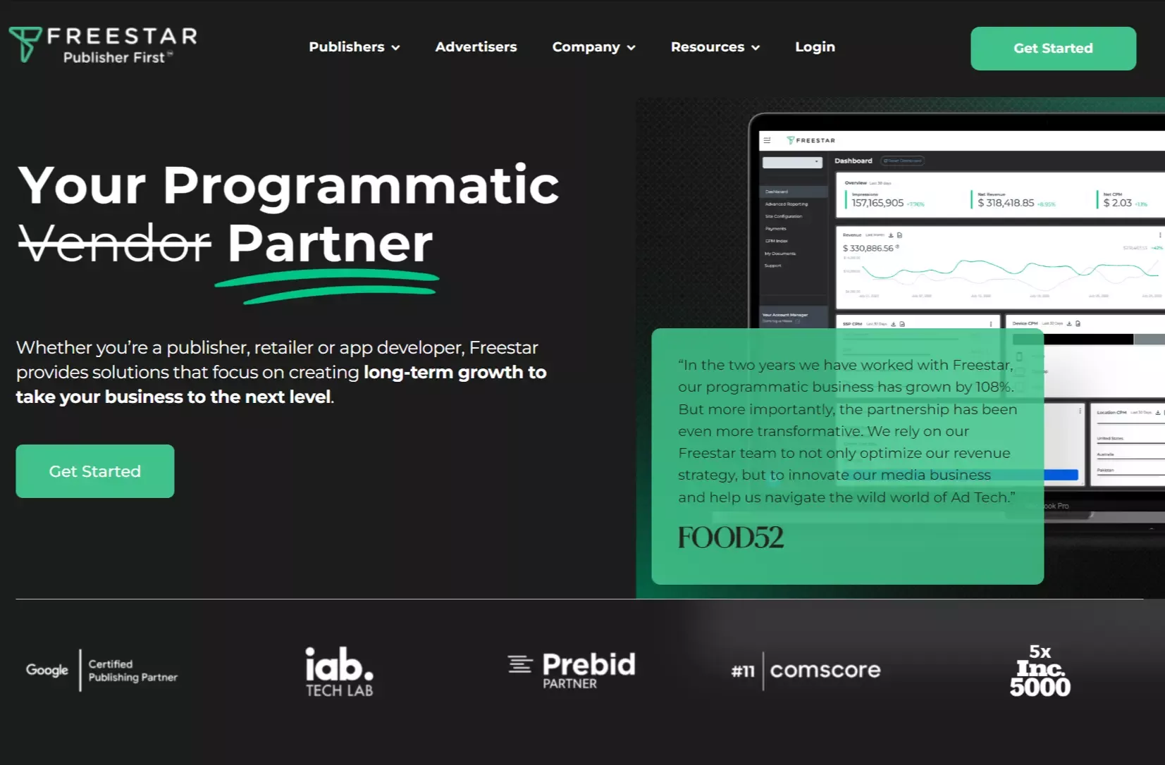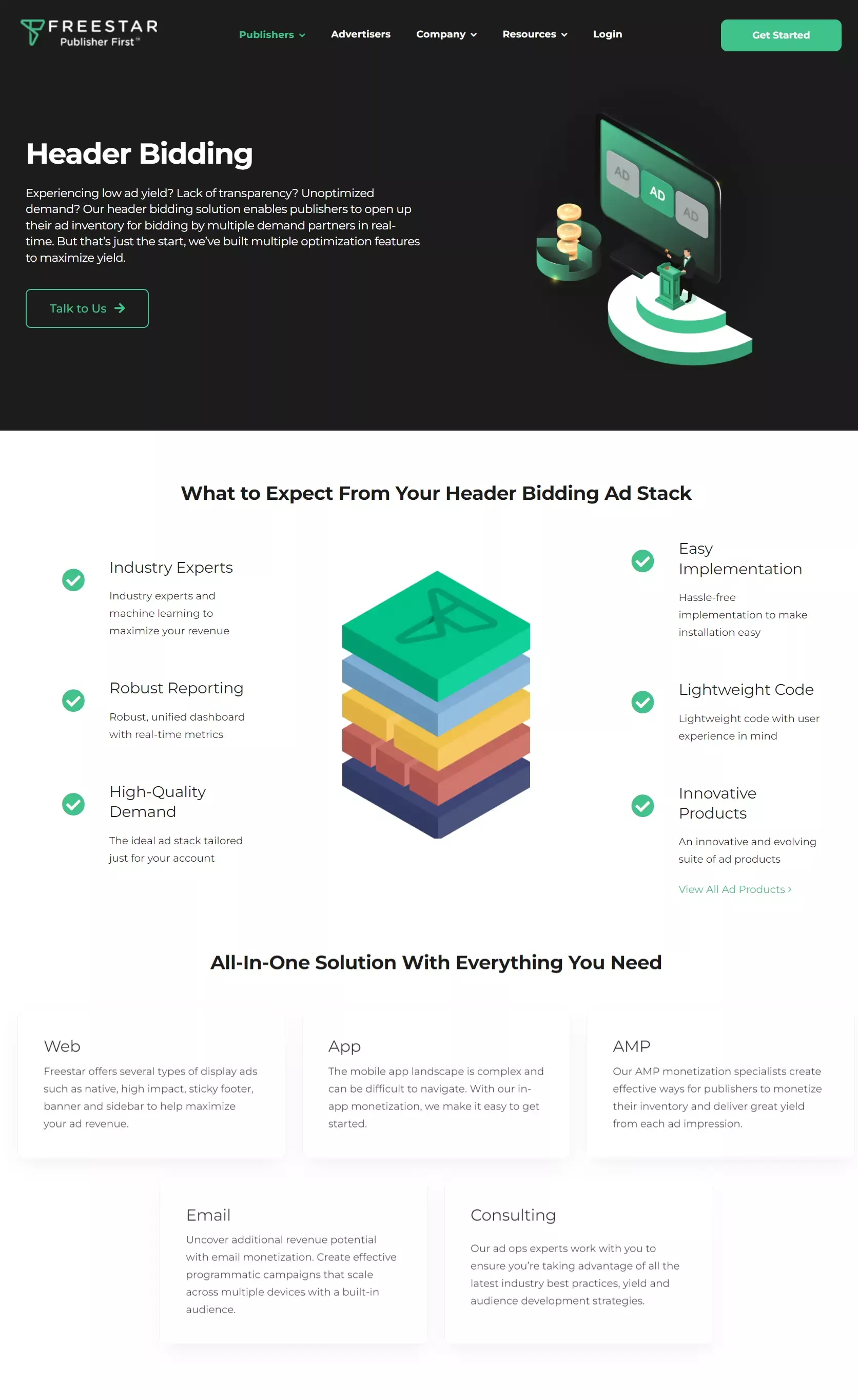 - Freestar offers a blend of programmatic header bidding and ad solutions, assisting publishers, retailers, and apps in maximizing revenue.