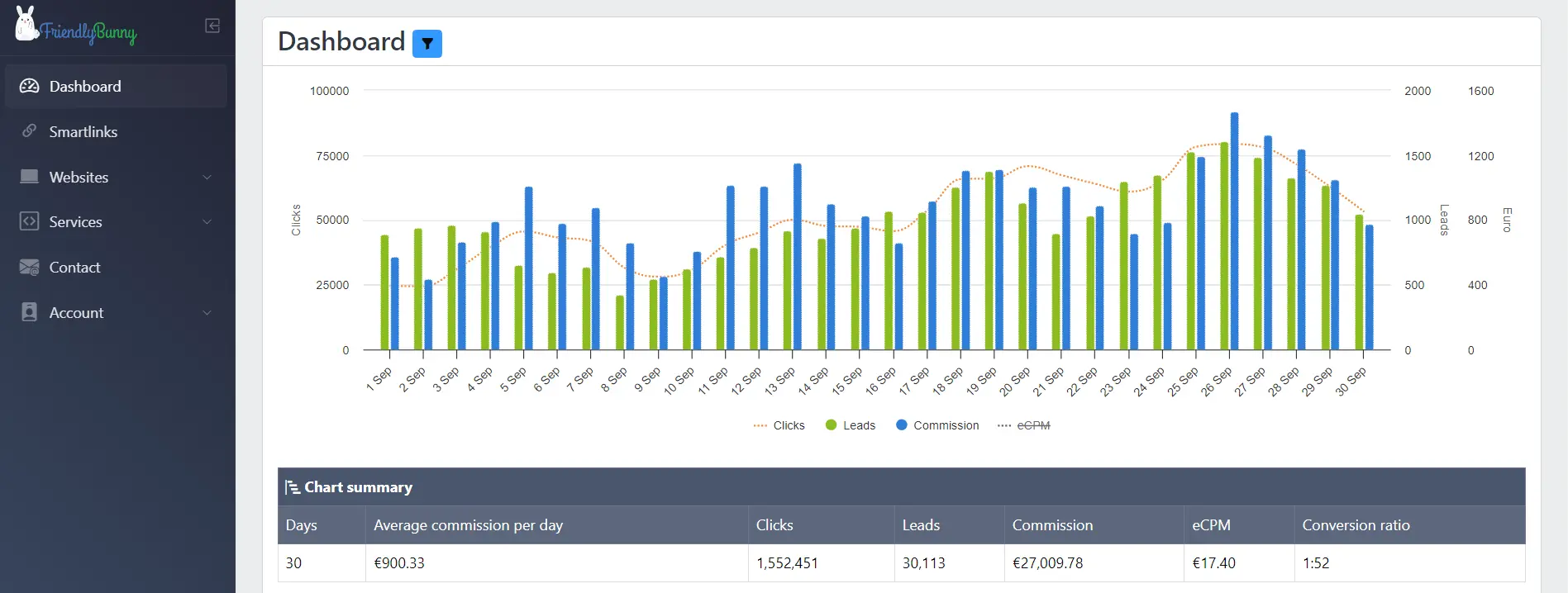 - FriendlyBunny offers real-time updates of your clicks, leads and commissions.