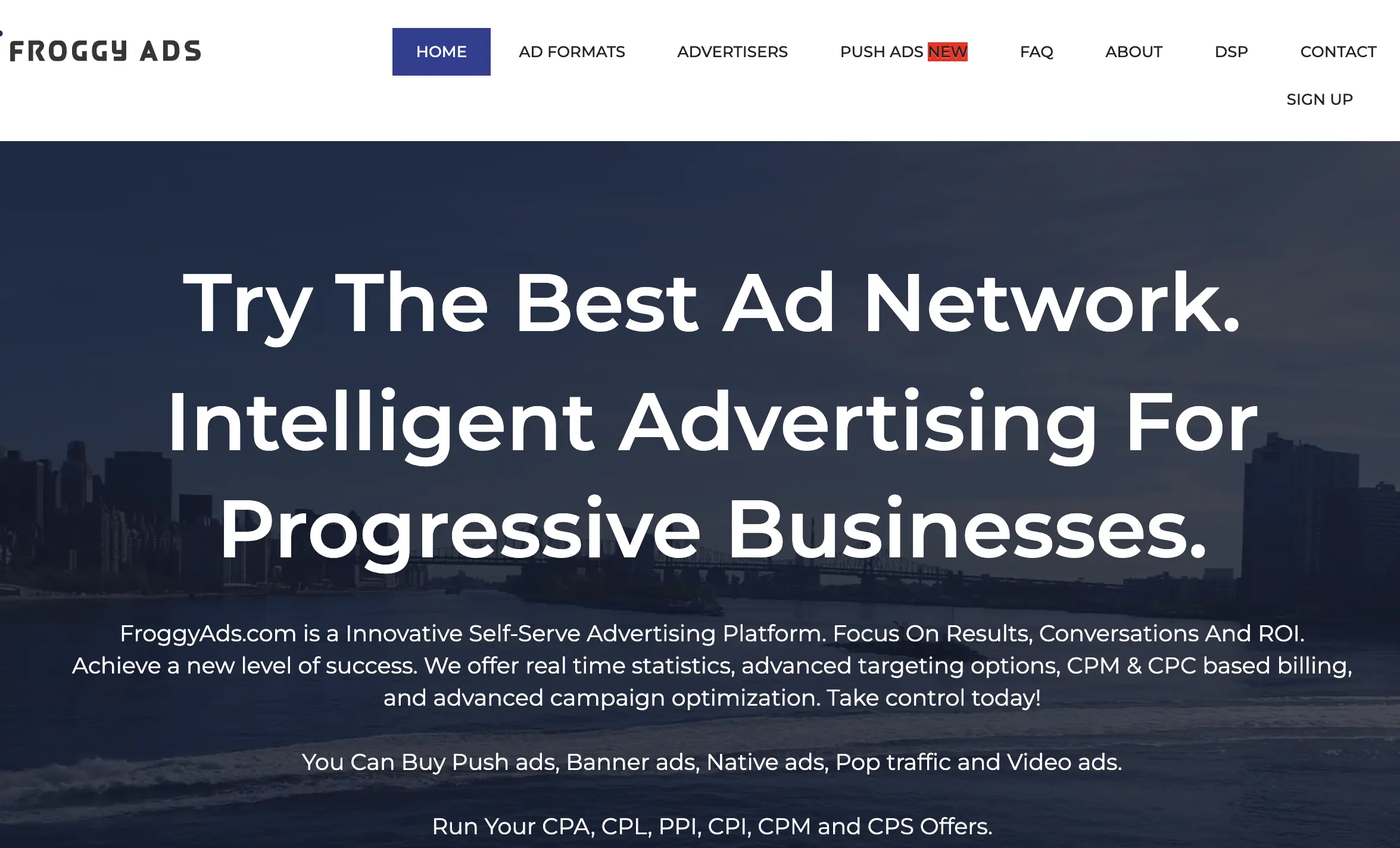 - Froggy Ads is an all-in-one media buying ad serving platform that offers everything that ad serving advertisers and affiliates need to run a successful business.