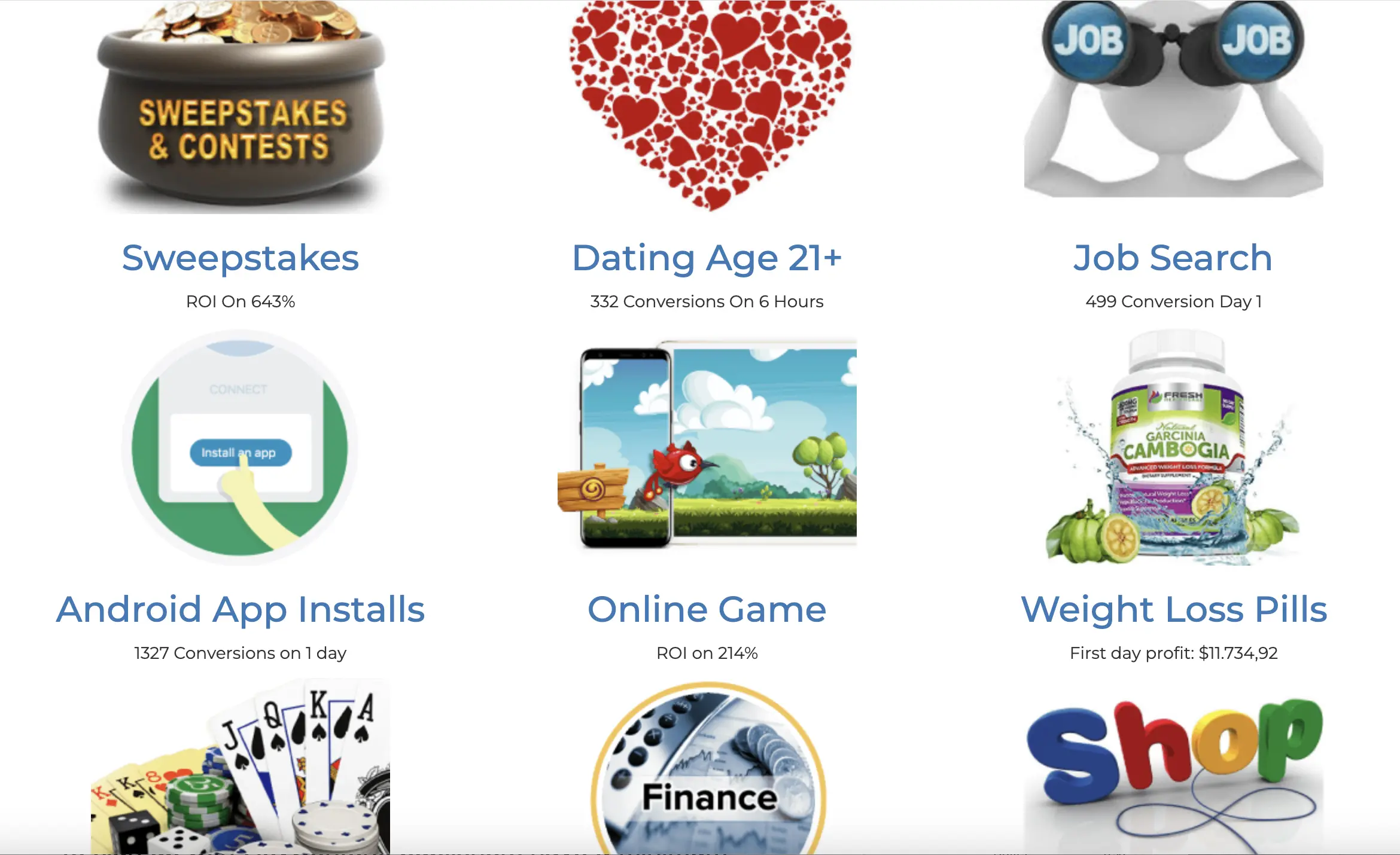 Froggy Ads supports the following verticals: