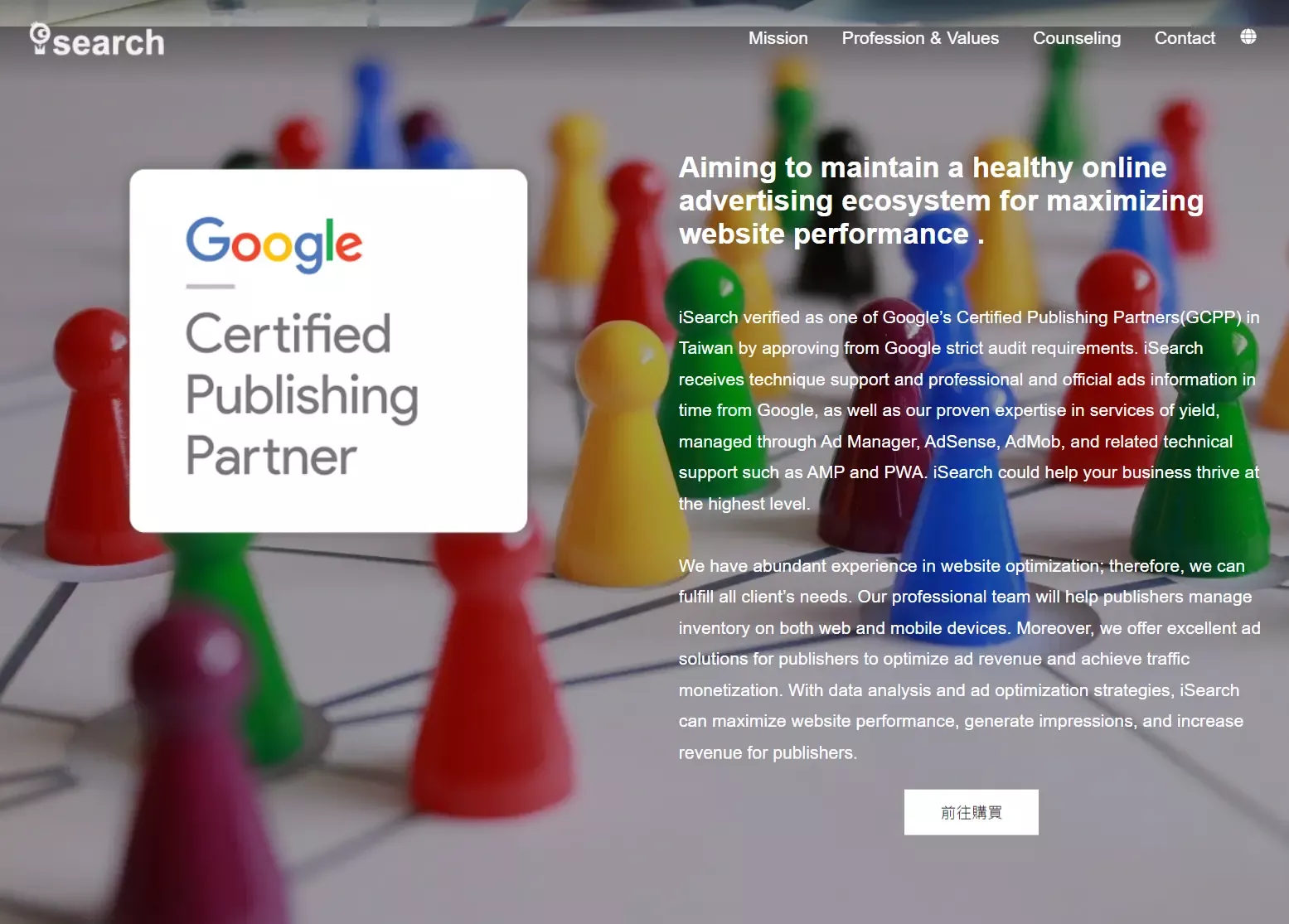 - iSearch is officially certified as the best partner of GCPP (Google Certified Publishing Partner) in Taiwan, ensuring publishers receive top-notch support and synchronized advertising expertise directly from Google.