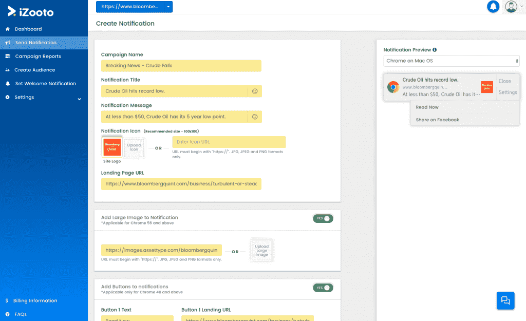 - News and Media: iZooto helps news and media websites increase their return traffic by sending personalized news updates and breaking news alerts. This increased engagement translates into higher ad revenues.