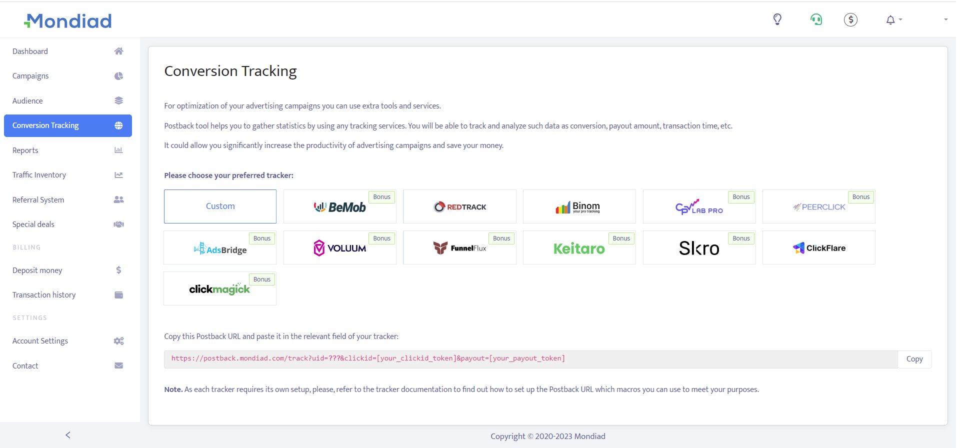 - Self-Serve Platform: Mondiad gives you granular control via a compehensive set of tools to fine-tune your results.