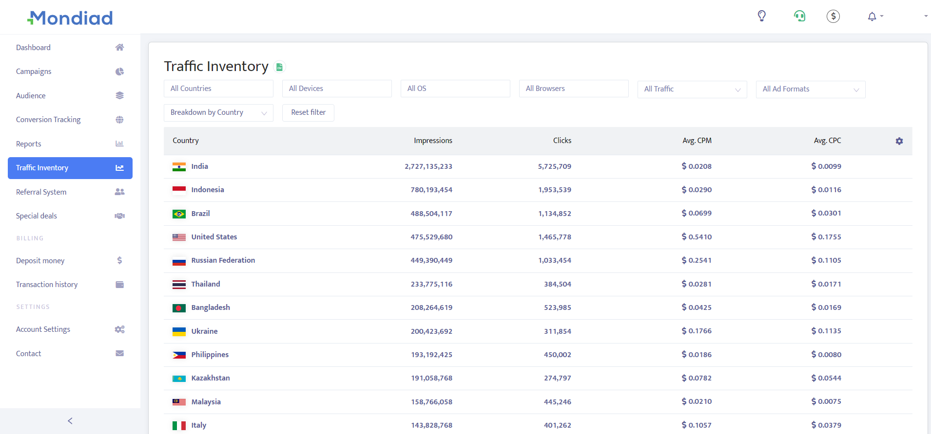 - Traffic Fraud Detection: Mondiad identifies and mitigates fraud by using both internal and third party tools.