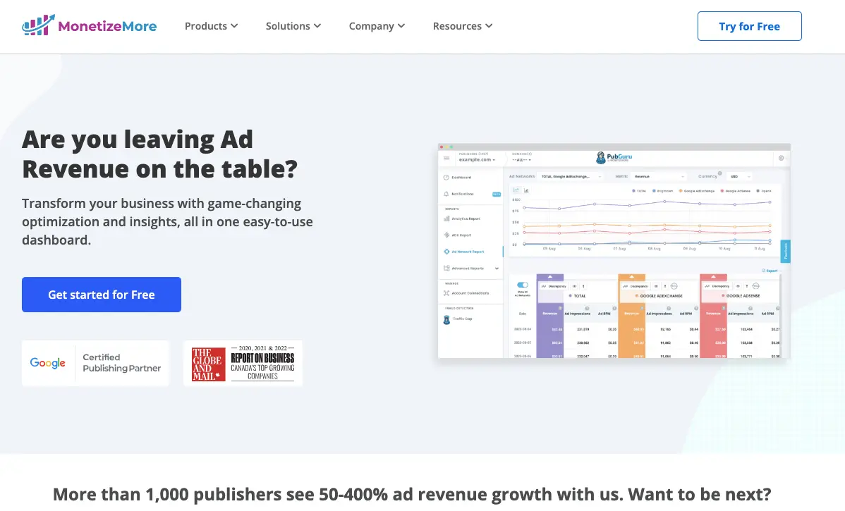 MonetizeMore is a rapidly expanding ad tech company that has established itself as one of the industry leaders in ad revenue optimization. PubGuru, their award-winning programmatic ads management platform for publishers offers a range of tools and solutions to maximize revenue from digital advertising. As a Google Certified Publishing Partner, Monetizemore’s objective is to help publishers extract the highest possible value from their online content and advertising inventory. While ad revenue is the final goal, they also work on improving your website from different aspects including ad server, SEO, content quality, and more.