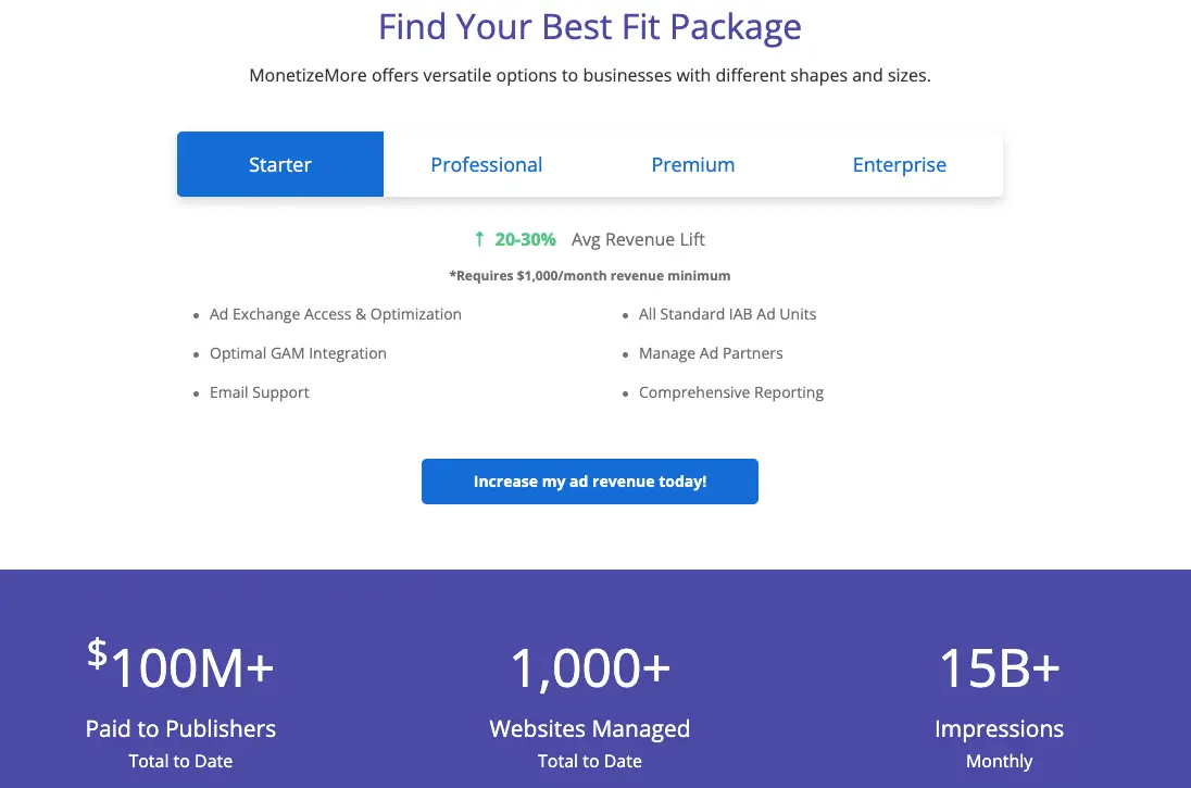 - Better Revenue Splits: MonetizeMore helps you get better revenue splits and payment terms, with access to specialized ad networks that require billions of ad impressions every month.