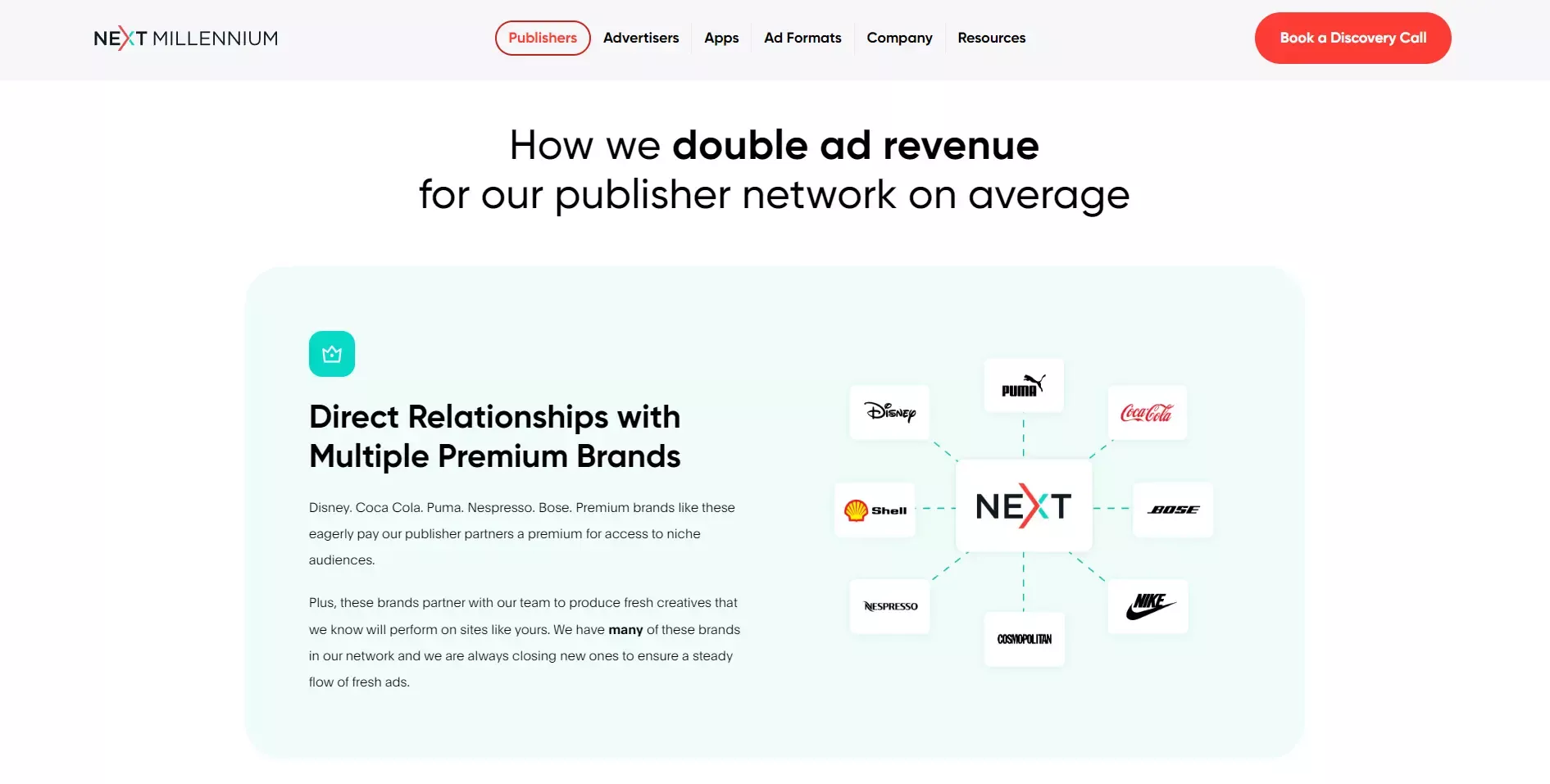 Revenue Growth for Publishers: Next Millennium has helped publishers increase their ad revenue by an average of 2x through innovative advertising solutions and verified traffic