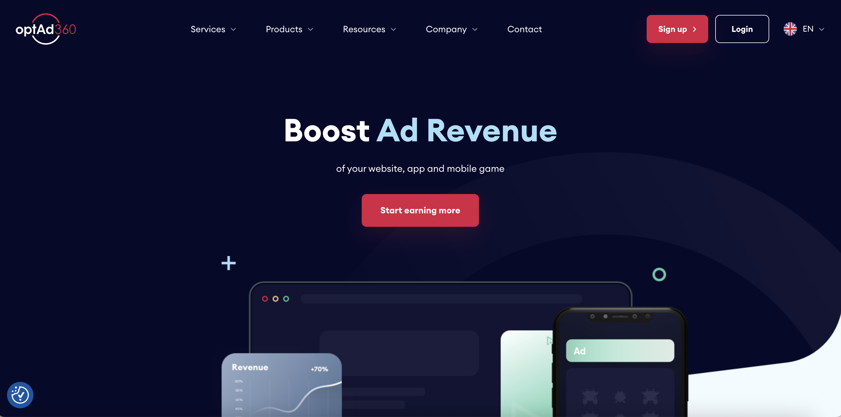 - OptAd360 helps publishers monetize their content by boosting the ad revenue of your website, app, or mobile game.