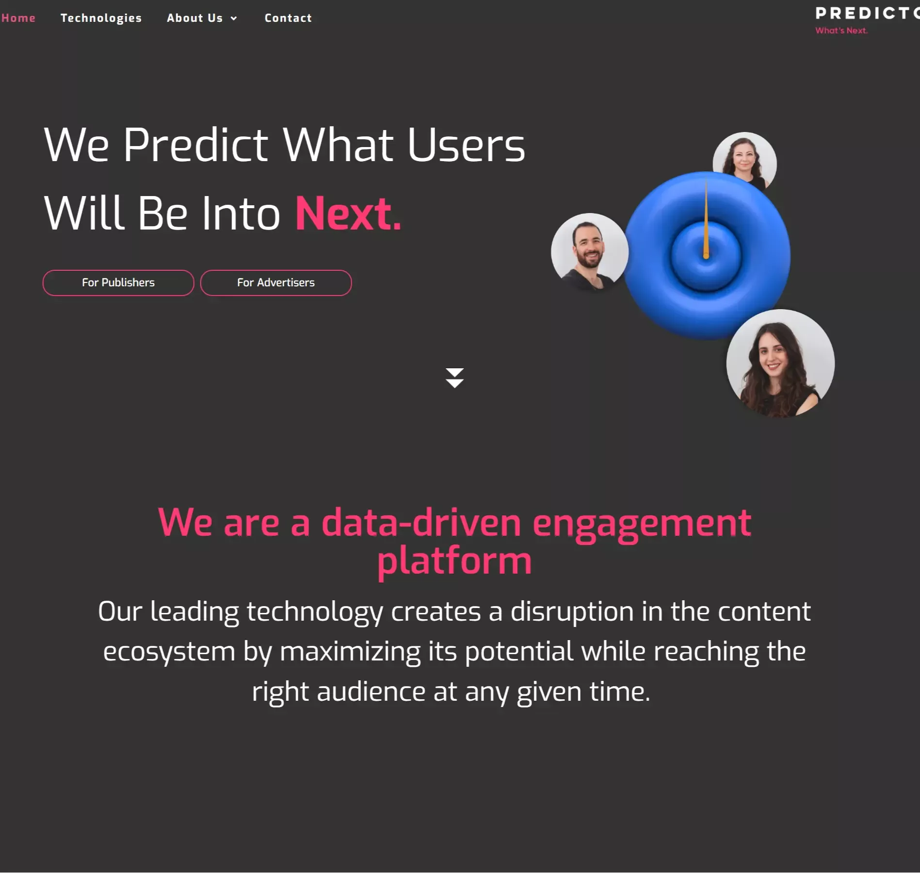 Predicto is a cutting-edge software platform enhancing engagement across various platforms through advanced data analytics and predictive technology. As a data-driven engagement platform for publishers, it leverages real-time analytics to direct targeted audiences to relevant content. With industry-leading forecasting and yield optimization tools, they maximize audience value through precise data-driven strategies.