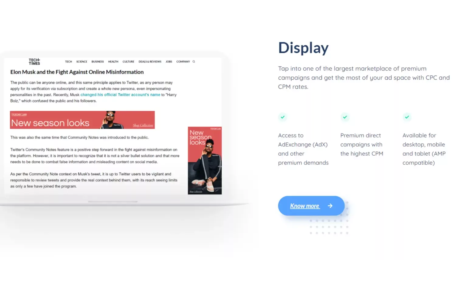 - Their offerings include premium direct campaigns renowned for their high CPM rates, tailored for desktop, mobile, and tablet (AMP compatible).