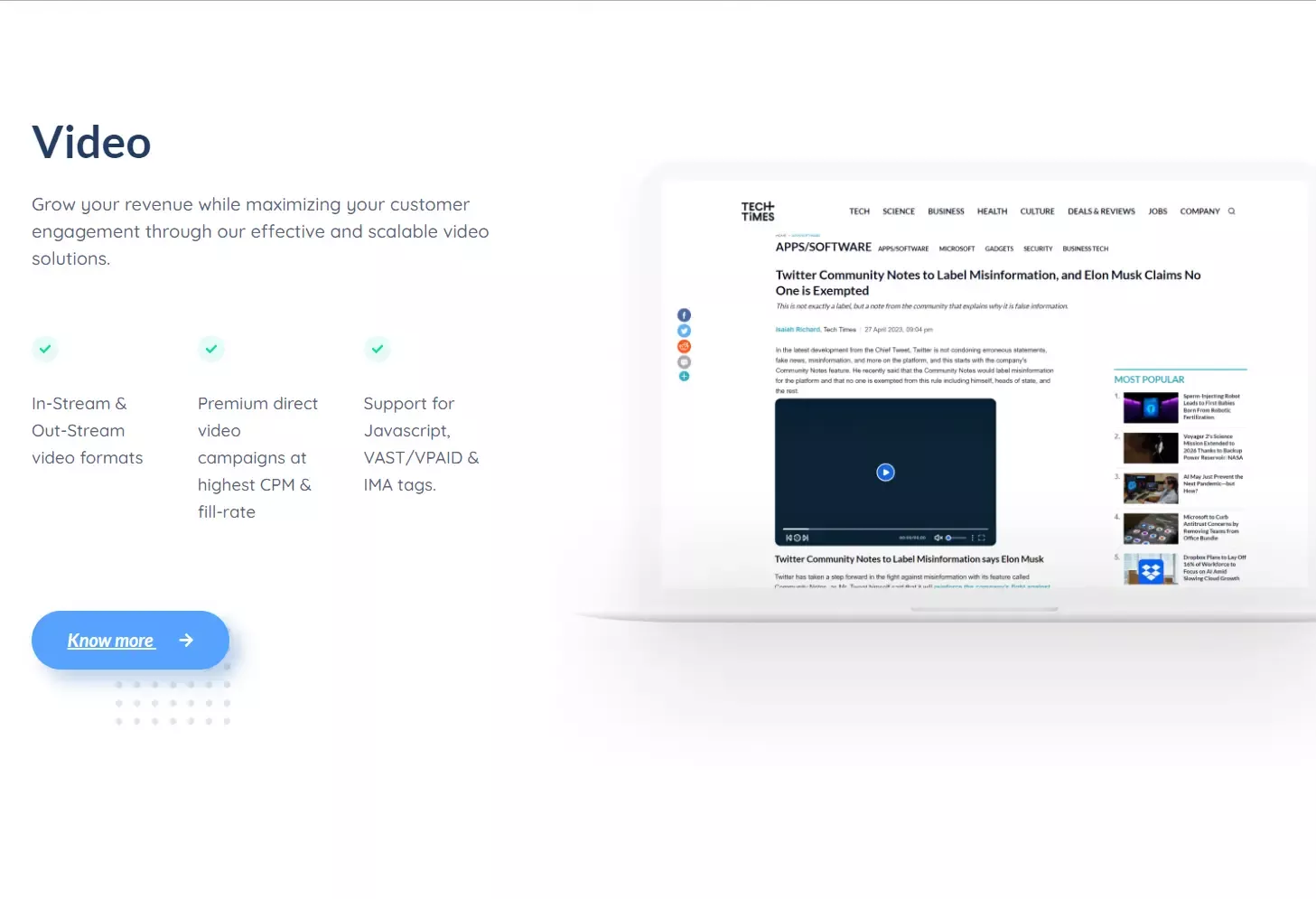 - They offer In-Stream & Out-Stream video formats.