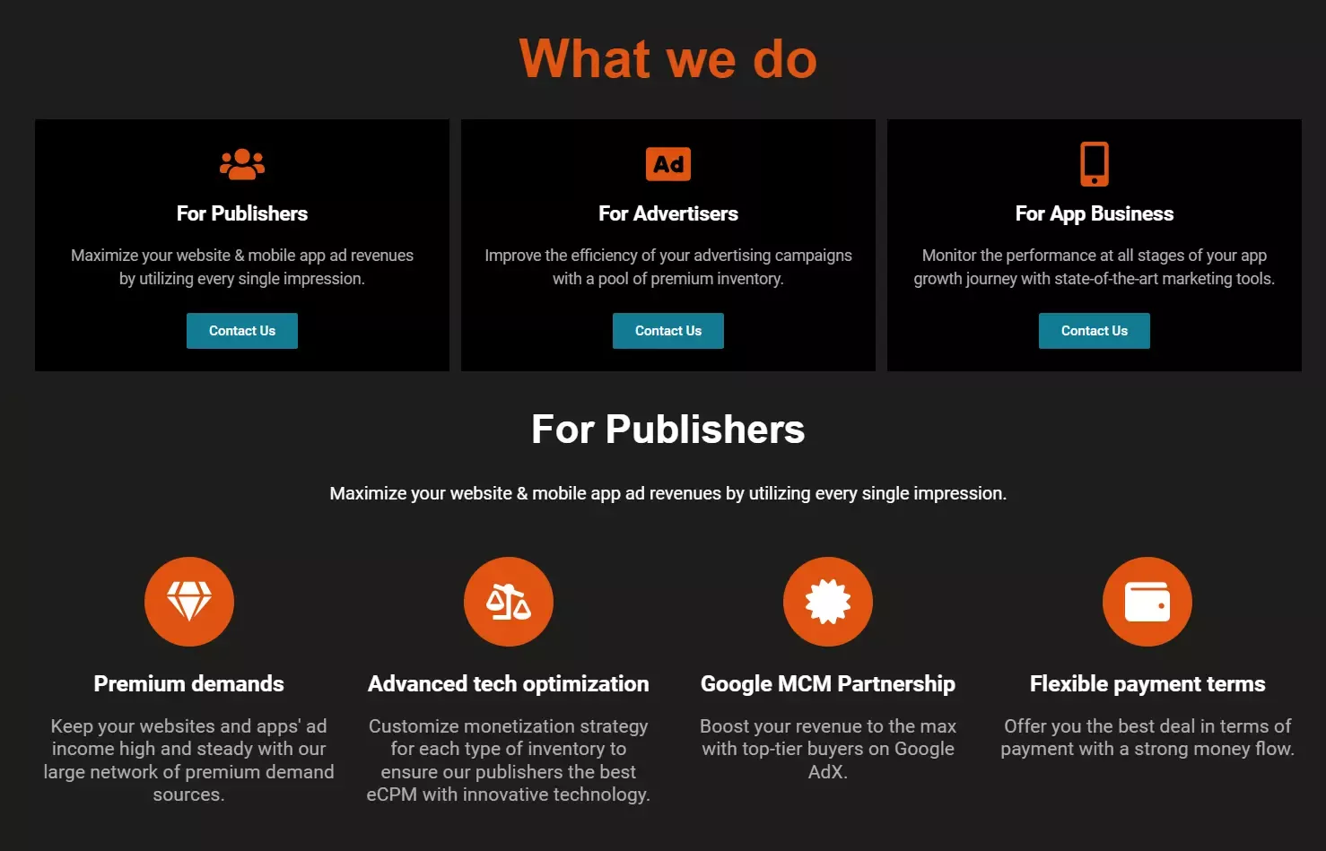 - Premium Revenue Booster: They streamline ad monetization, allowing publishers to concentrate on content creation and audience growth. Their advanced advertising technology optimizes eCPM and fill rates efficiently.