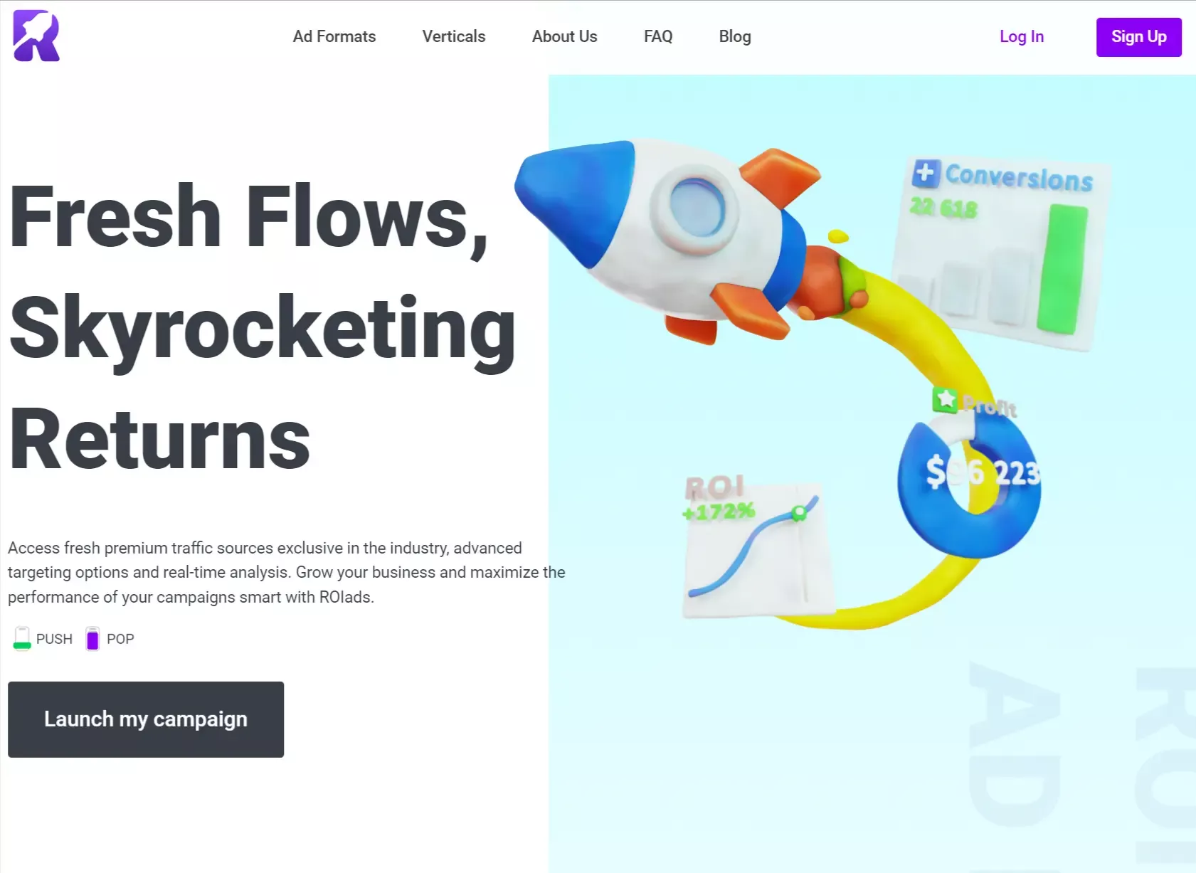 - High-Quality Traffic: ROIads guarantees premium traffic sources, maintaining the quality and reliability of ad placements to maximize publisher earnings.