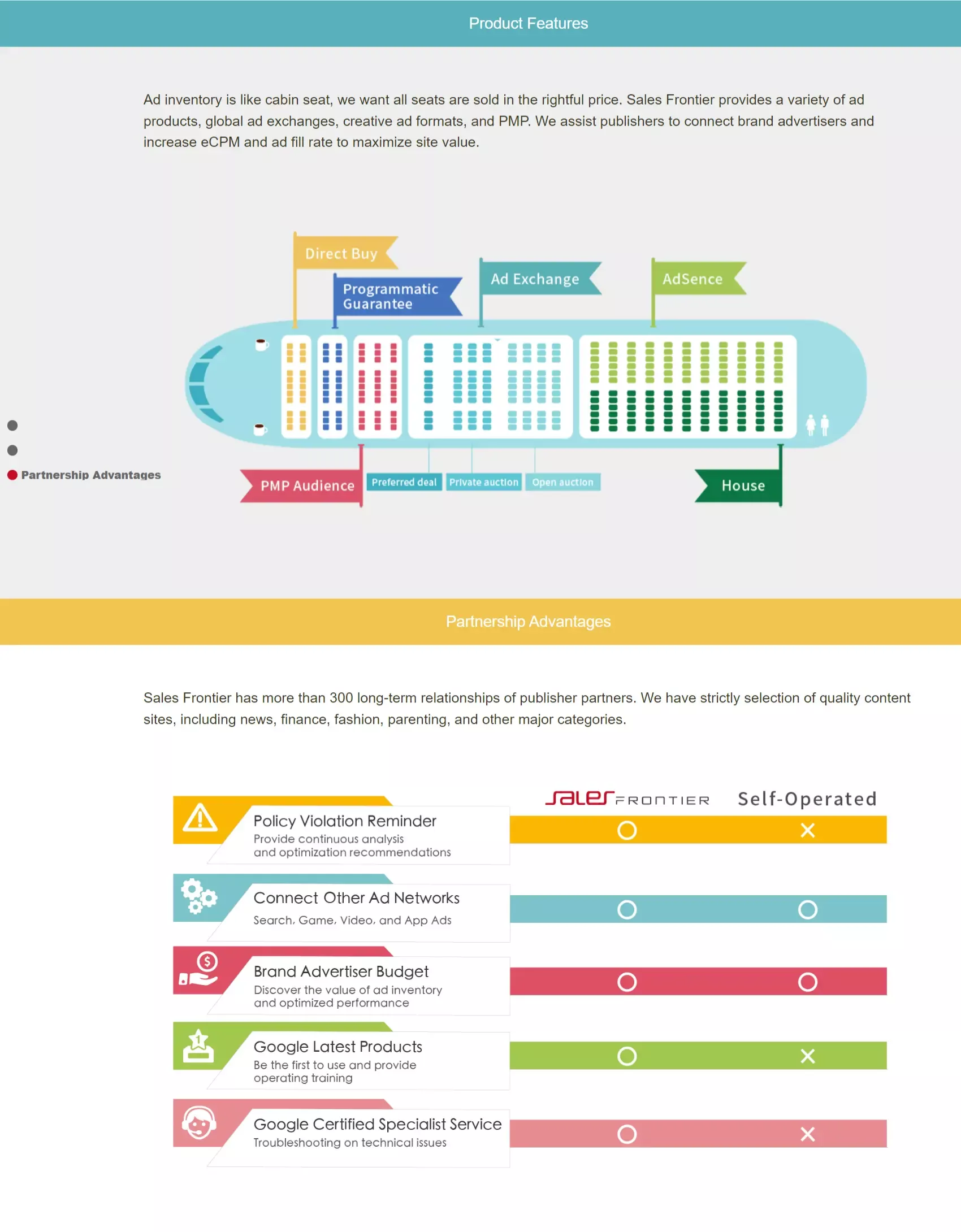 - Google Latest Products: Sales Frontier ensures publishers are among the first to utilize and receive operational training on Google's newest advertising products.