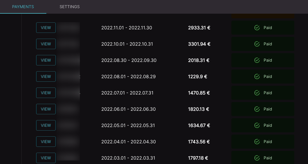 Setupad operates on net 60-day payments and there is a minimum of 100€ threshold. Meaning, if the earnings don't reach the threshold for the month, they will be added to the next month and paid out. Setupad offers payments through bank transfer, PayPal, Payoneer, Wise, Revolut, or Paysera.