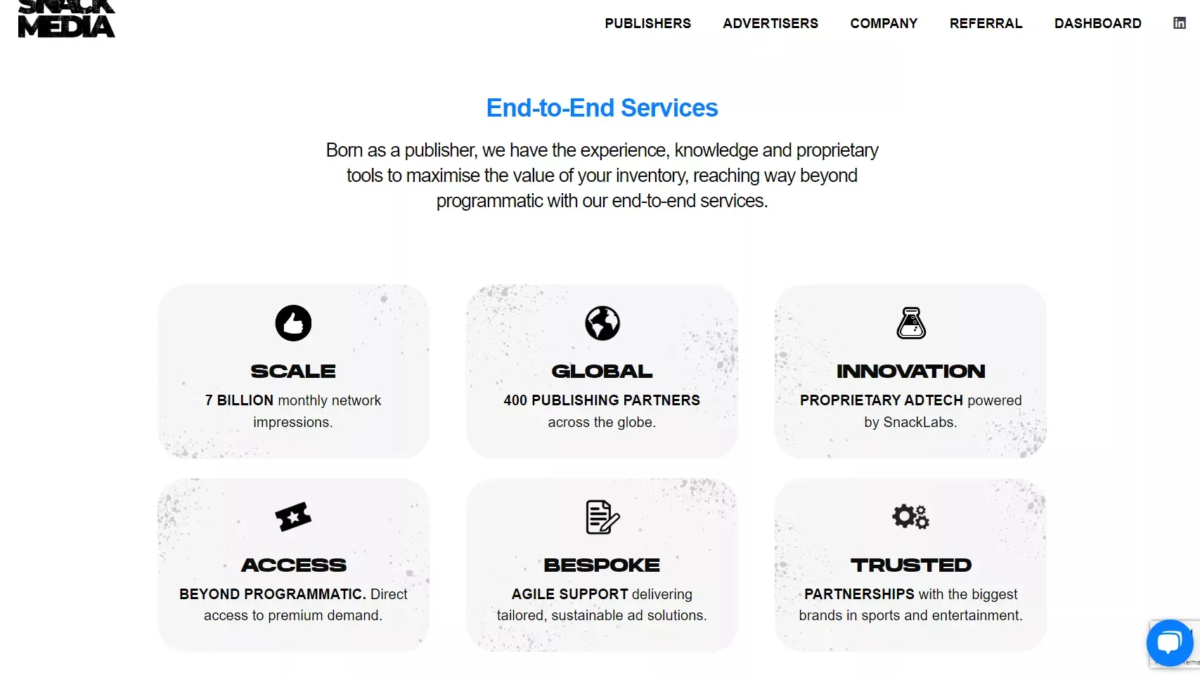 Snack Media offers comprehensive solutions to maximize the value of digital sports content for publishers and advertisers. Key offerings include: