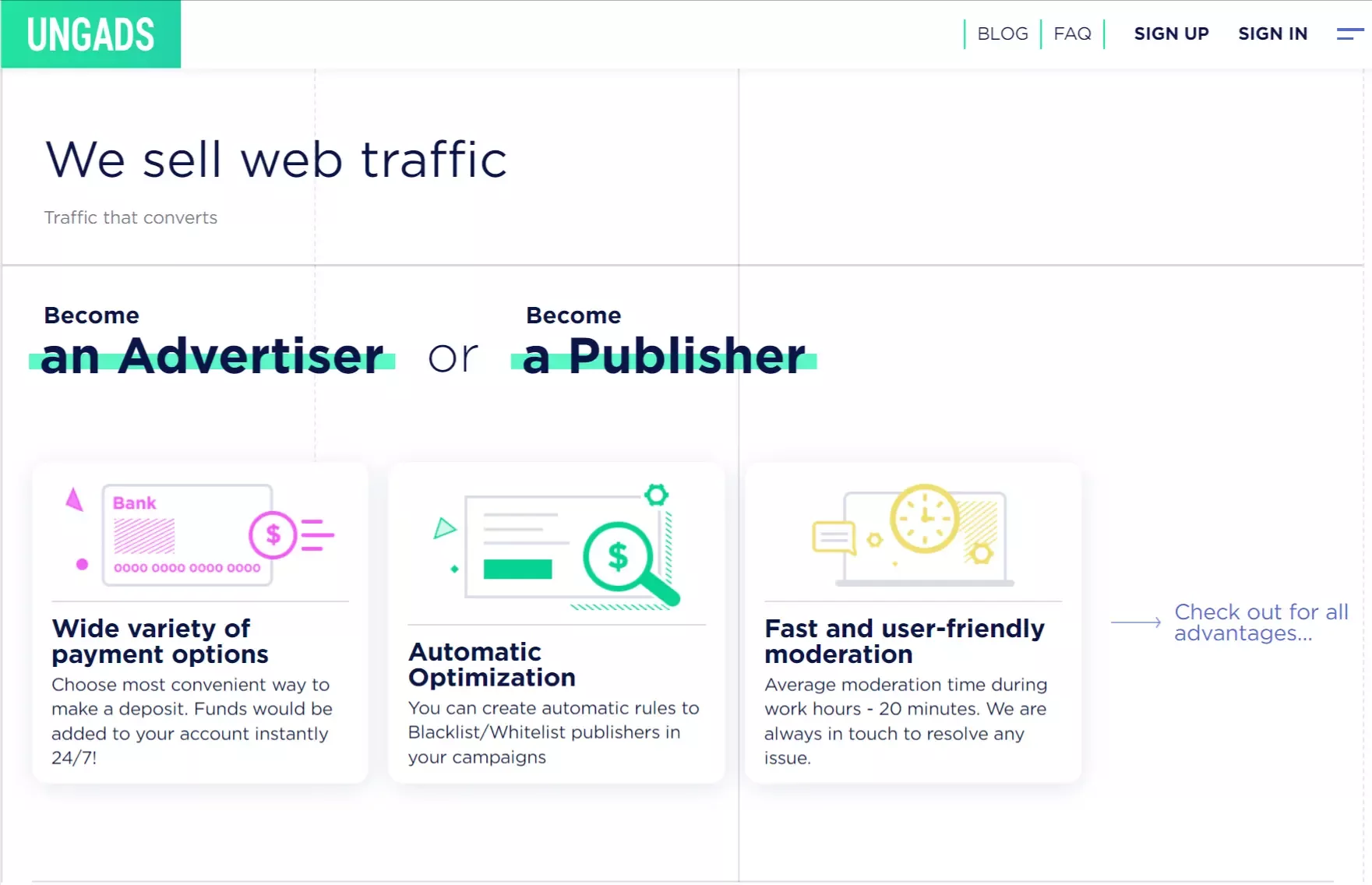 - UngAds connects advertisers with over 2000 publishers across 190 countries, delivering expansive reach and high-quality traffic.