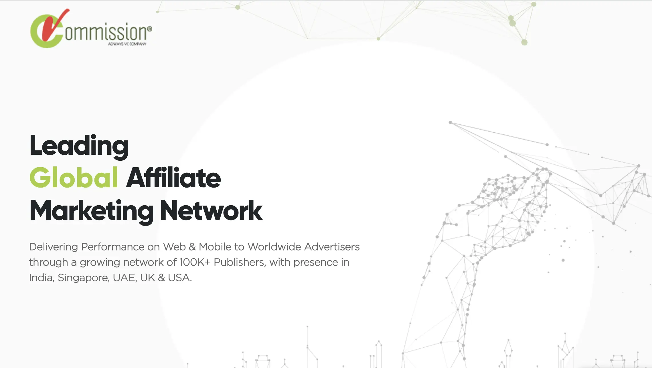 - As a leading global affiliate marketing network, vCommission delivers flexible solutions on both web and mobile platforms to advertisers, with more than a 100k publishers across the globe.